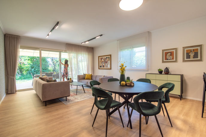 הילדים עזבו את הבית, הצרכים השתנו וגם בער הרצון להתחדש ולרענן את המראה הכללי. תוכננו ועוצבו מחדש סלון, פינת אוכל, מטבח, שרותיי אורחים ויחידת ההורים. השיפוץ בוצע בלו"ז קצר מאוד, בזמן שבעלי הבית גרים בו.
