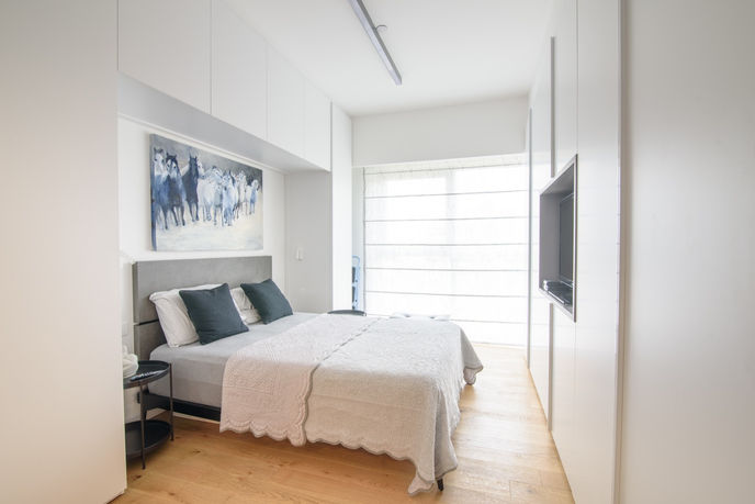 דירת 4 חדרים בפרוייקט קבלן בשטח של כ-100 מר' שהוסבה ל 3 חדרים והותאמה לצרכי הלקוחה.